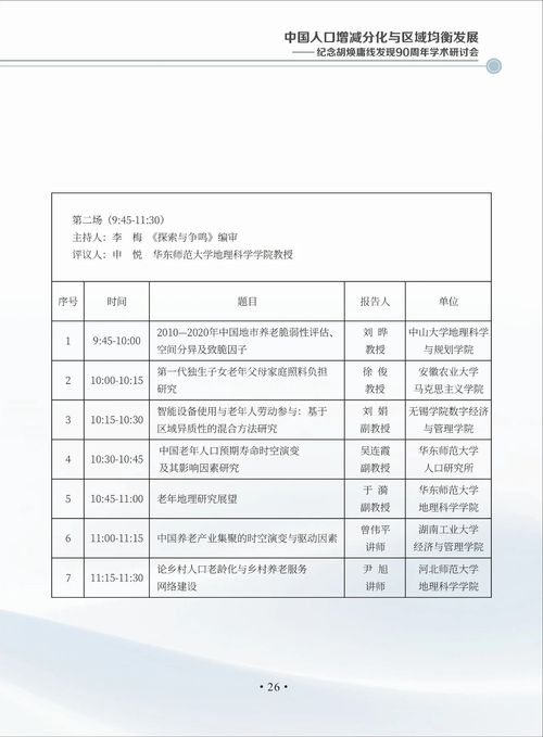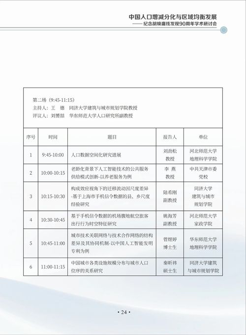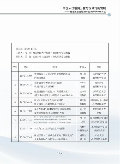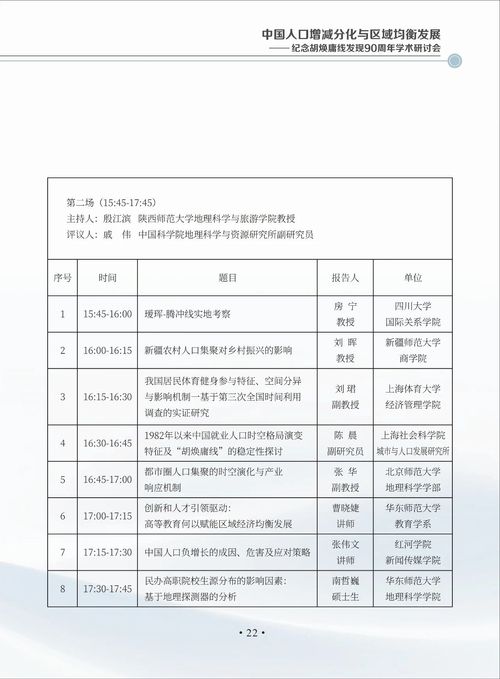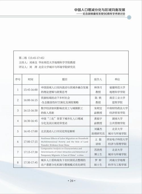 中国人口增减分化与区域均衡发展——纪念胡焕庸线发现90周年学术研讨会会议手册