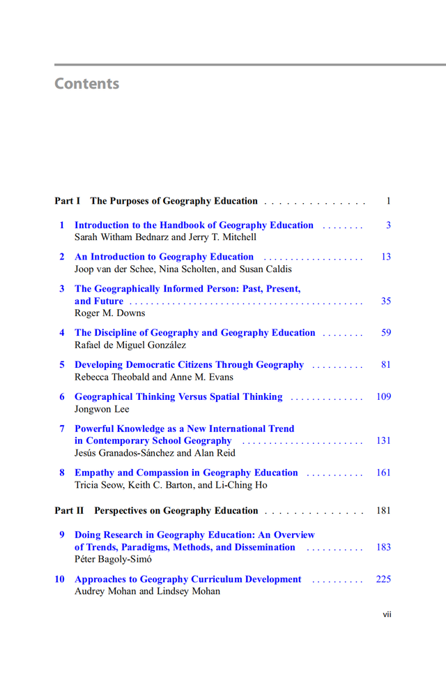 近日,太阳成集团段玉山教授团队参编的《Handbook of Geography Education》(地理教育手册)正式发行。该书作为Springer(施普林格出版社)发起的国际大型系列学术手册之一,由曾任美国地理学家协会(AAG)主席的Sarah Witham Bednarz教授和曾任国家地理教育委员会(NCGE)主席的Jerry T. Mitchell教授担任主编,汇集了全球地理教育领域的前沿研究成果与实践经验,旨在为地理教育的未来发展方向提供权威指导。