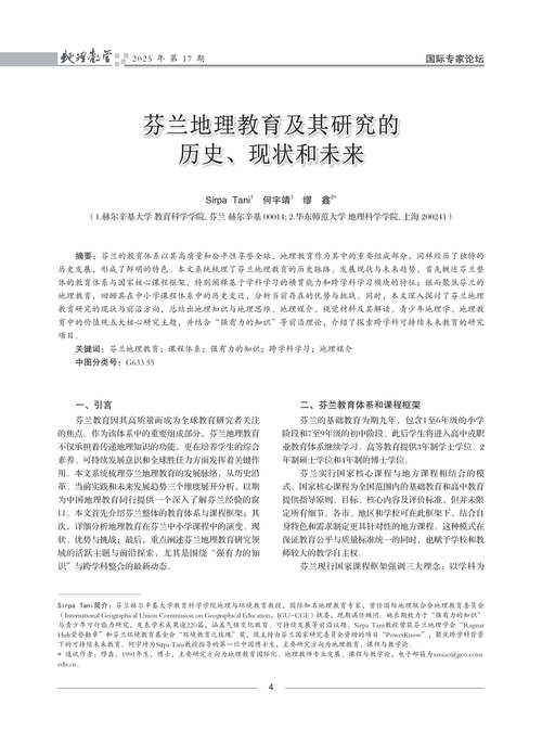 引用格式:Sirpa Tani,何宇靖,缪鑫.芬兰地理教育及其研究的历史、现状和未来[J].地理教学,2025(17):4-7.