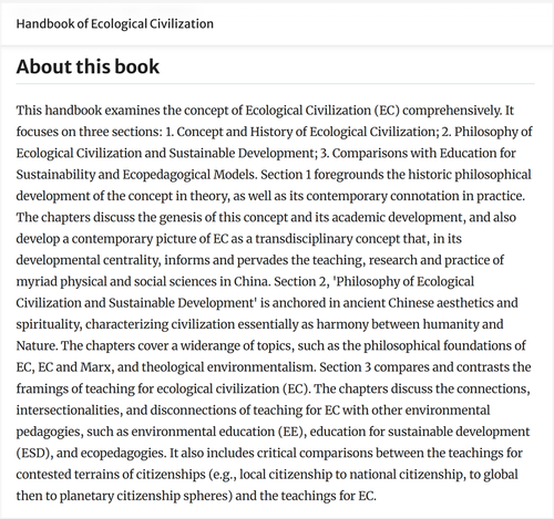 《Handbook of Ecological Civilization》的构成