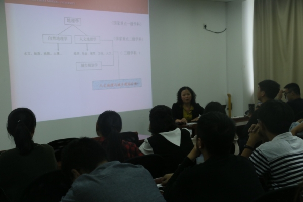 2017年10月18日下午,城市与区域科学学院老员工学业指导活动在资环楼546室举行。殷为华副教授以“Becoming an Active Learner”为主题,为学院2017级本科生做了人文地理与城乡规划专业的学习进行指导。