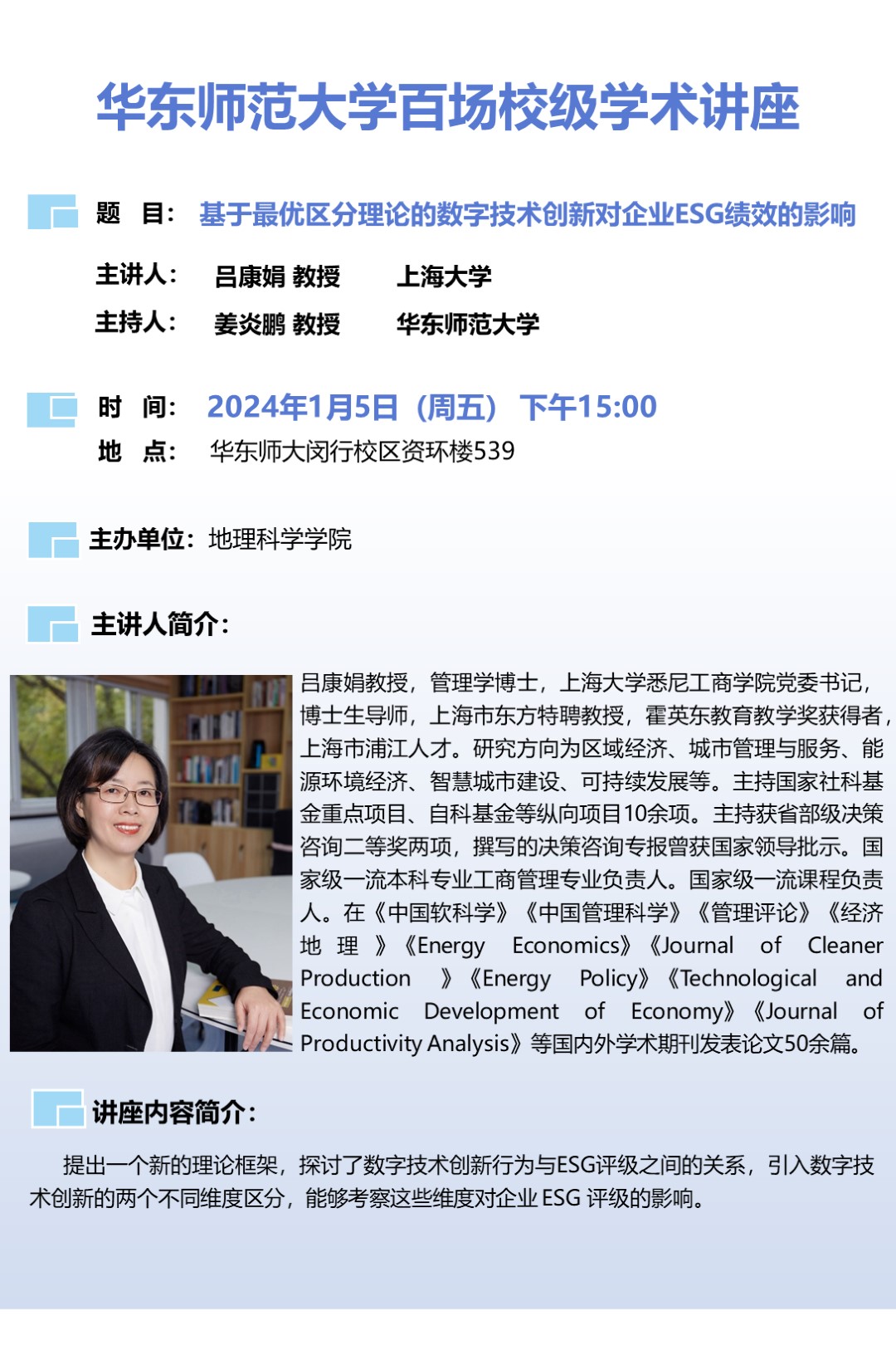百场校级学术讲座-基于最优区分理论的数字技术创新对企业ESG绩效的影响